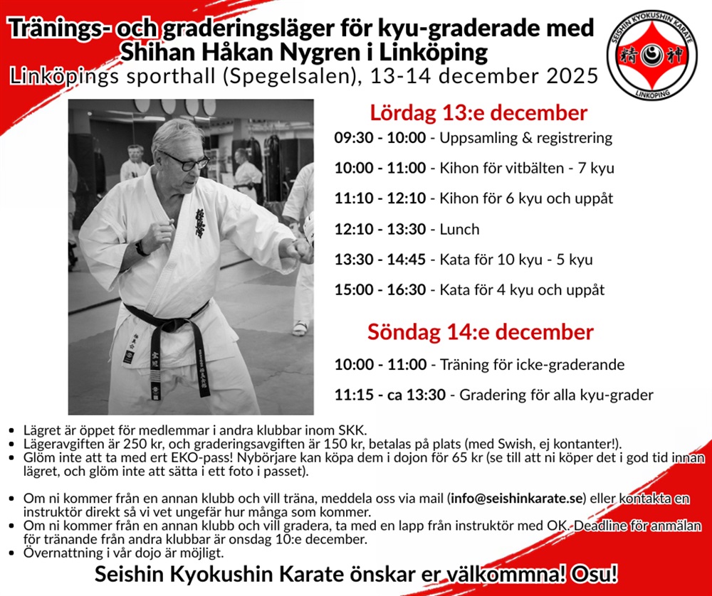 Graderingsläger den 13-14:e december med Shihan Håkan Nygren, 7 dan